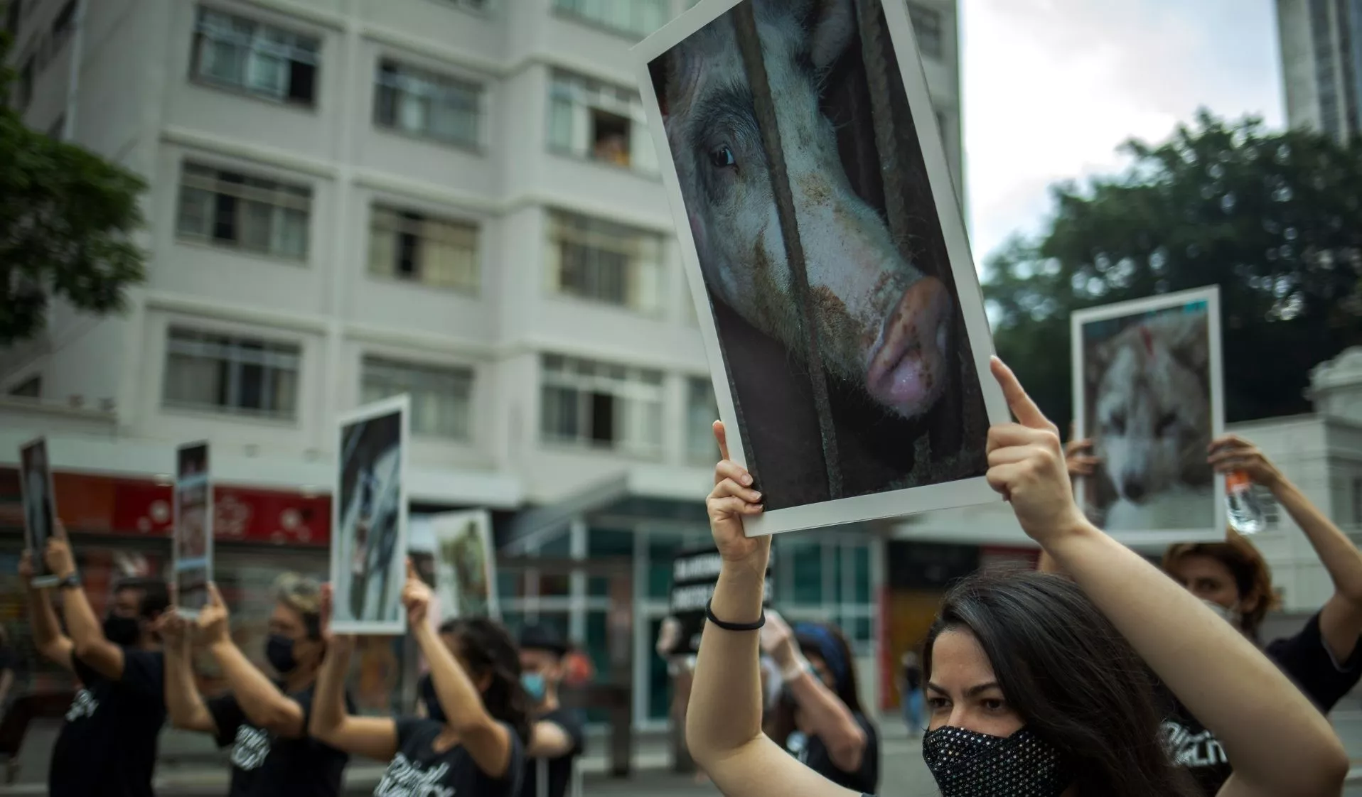 Todos os anos a Animal Equality faz um ato em observação aos animais que passaram por situações de crueldade, como na imagem acima, de 2024. A manifestação sempre acontece aos domingos mais próximos do dia 10 de dezembro.