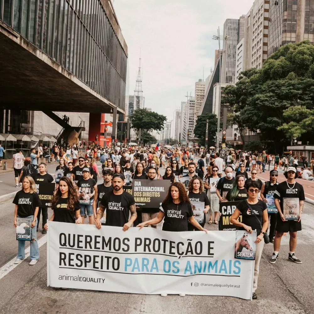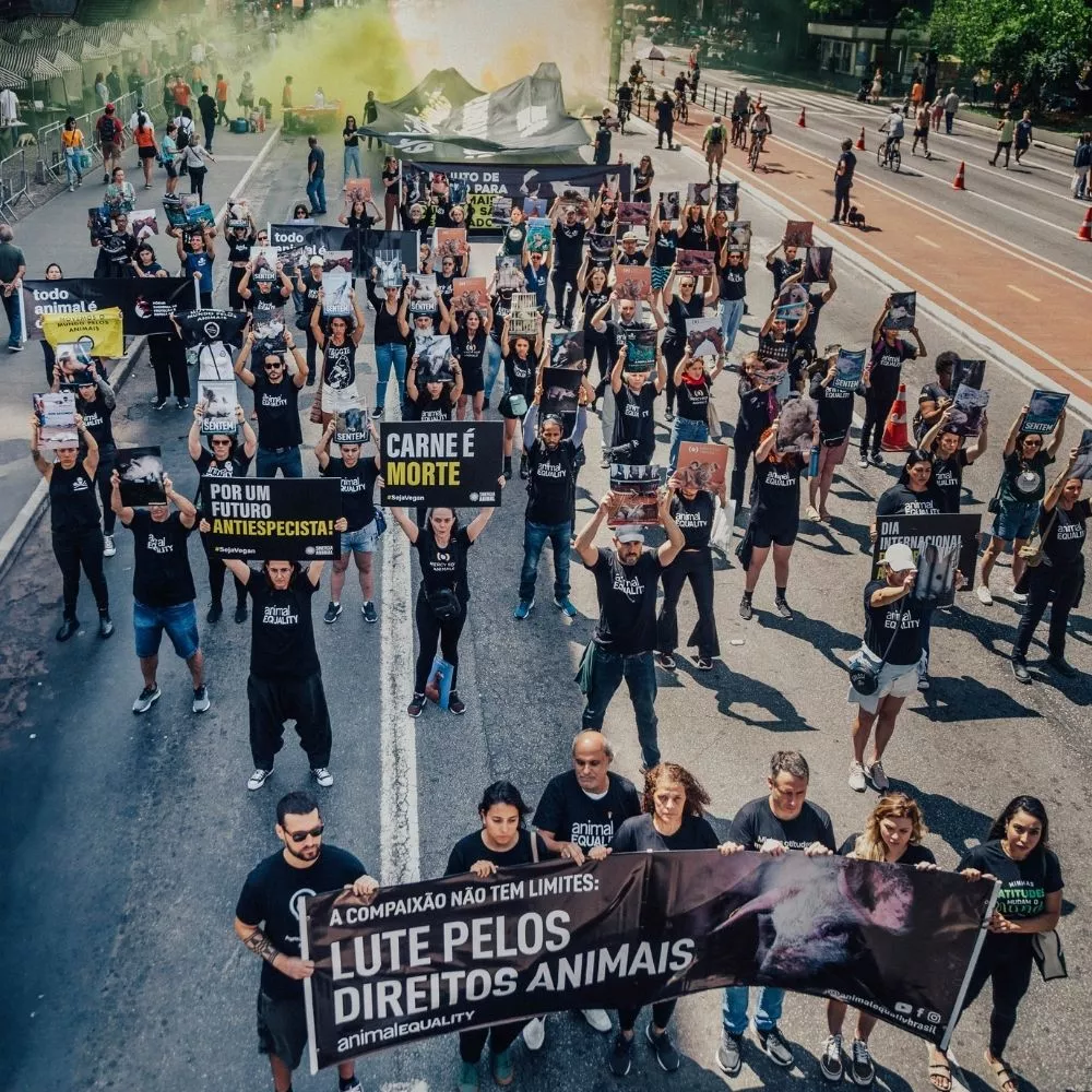 Em 2025, realizaremos uma marcha no dia 07/12, com concentração às 9h30 no vão do MASP e terá um caráter de urgência política. Isso porque, após um recente avanço na proteção da fauna silvestre, uma emenda parlamentar criou um grave retrocesso: a exclusão dos animais explorados para alimentação da proteção do Artigo 32 da Lei de Crimes Ambientais.